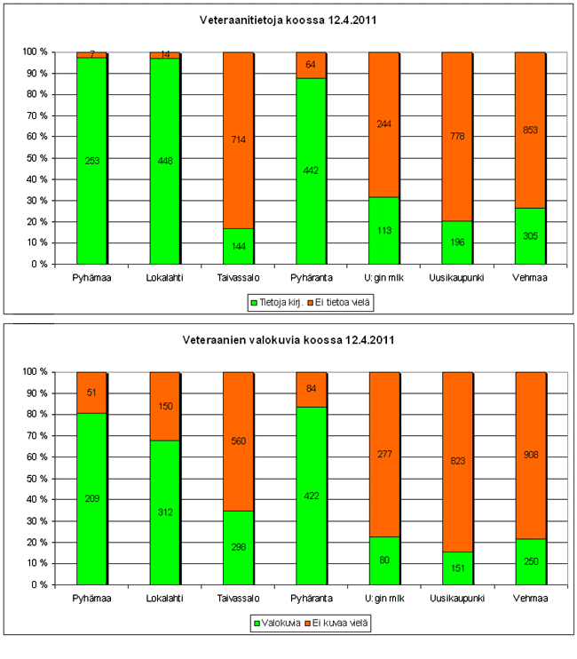 Elokuussa 2011 veteraanitietojen keräys on kolmen alueen osalta edennyt melko pitkälle. Katso lähemmin omalta sivulta