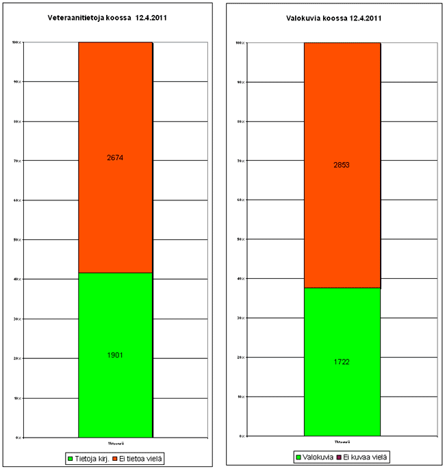 Seuraava kaaviot osoittavat tietojen ja kuvien keräystilanteen 12.4.2011.